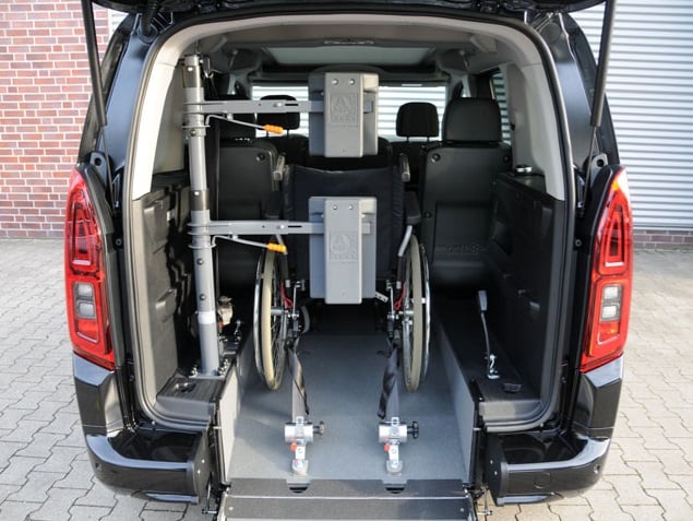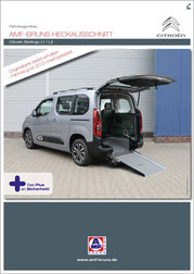 Der Citroën Berlingo ist ein rollstuhlgerechtes Fahrzeug für Passivfahrer. Durch den Heckausschnitt mit Auffahrrampe kann der Rollstuhlfahrer bequem befördert werden. Die rutschsichere Rampe ermöglicht einen einfachen Zugang zum Fahrzeug und dank der tiefergelegten Bodenwanne entsteht viel Platz im Fahrgastraum. Mit Hilfe eines Personen- & Rollstuhlrückhaltesystems wird der Rollstuhl am Fahrzeugboden befestigt und die Person gesichert. Extra Schutz bietet die Kopf- & Rückenstütze FutureSafe.