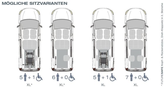 Der Citroën ë-Berlingo XL ist ein rollstuhlgerechtes Fahrzeug für Passivfahrer. Durch den Heckausschnitt mit Auffahrrampe kann der Rollstuhlfahrer bequem befördert werden. Die rutschsichere Rampe ermöglicht einen einfachen Zugang zum Fahrzeug und dank der tiefergelegten Bodenwanne entsteht viel Platz im Fahrgastraum. Mit Hilfe eines Personen- & Rollstuhlrückhaltesystems wird der Rollstuhl am Fahrzeugboden befestigt und die Person gesichert. Extra Schutz bietet die Kopf- & Rückenstütze FutureSafe.