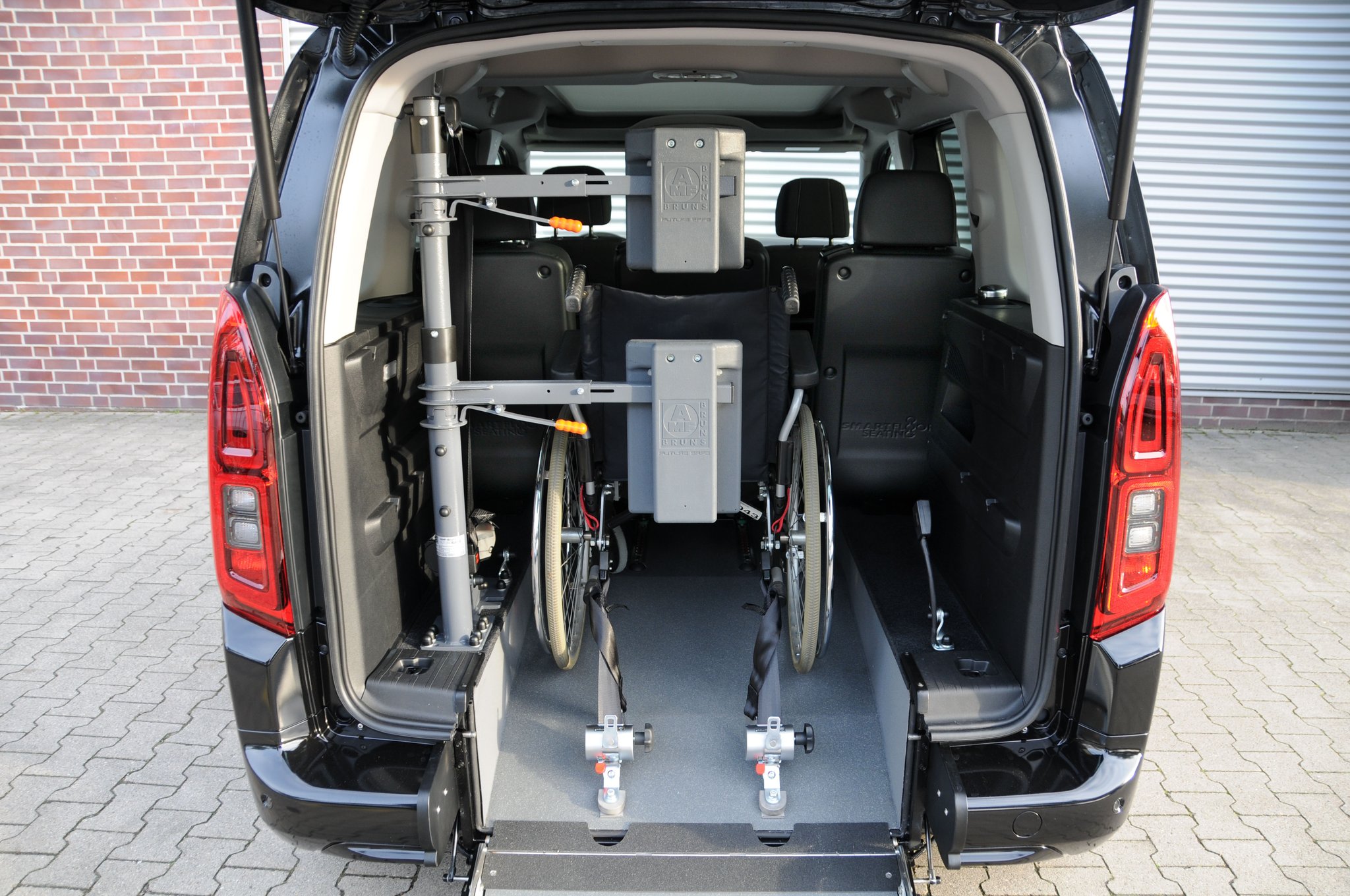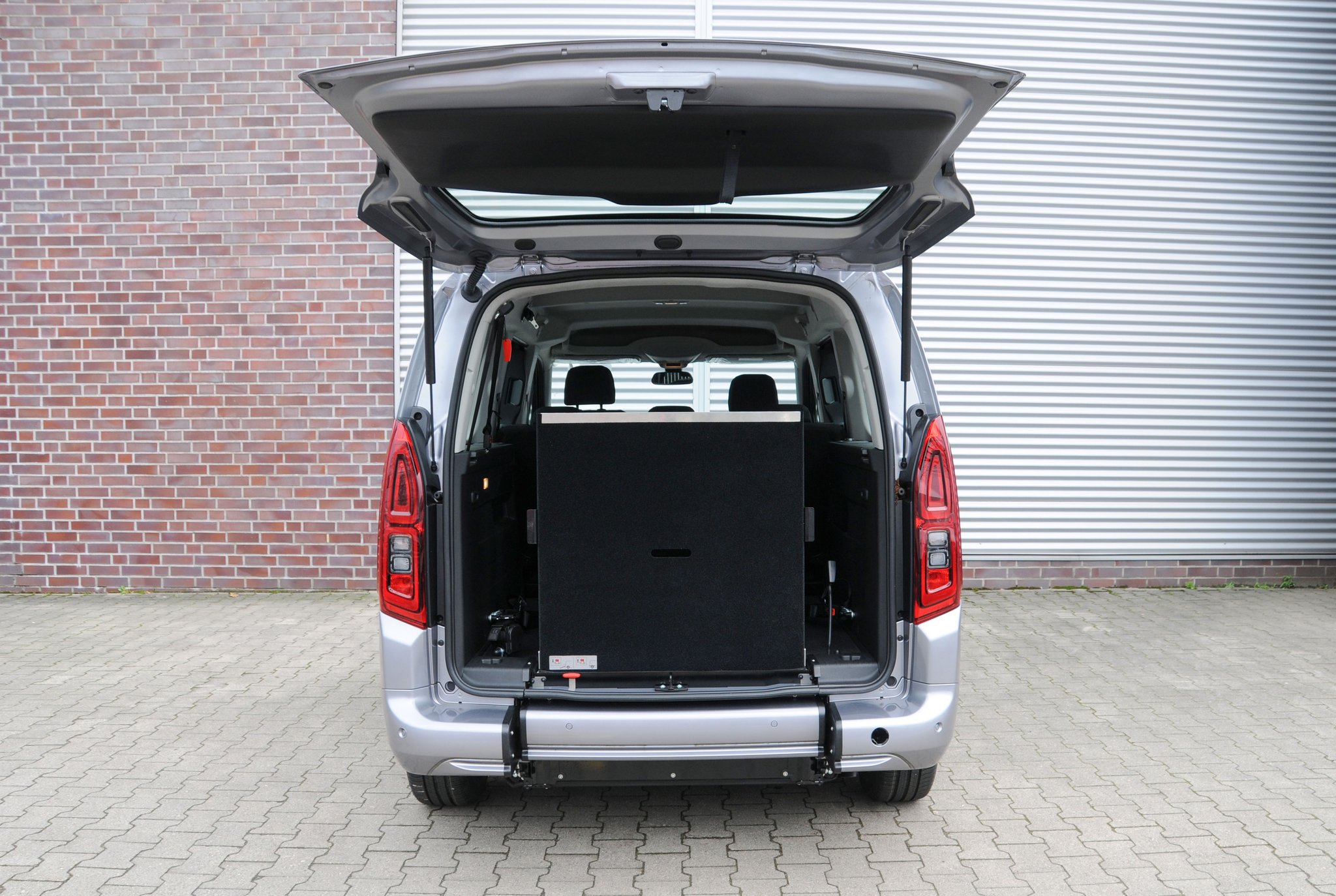 Der Fiat E-Doblò ist ein rollstuhlgerechtes Fahrzeug für Passivfahrer. Durch den Heckausschnitt mit Auffahrrampe kann der Rollstuhlfahrer bequem befördert werden. Die rutschsichere Rampe ermöglicht einen einfachen Zugang zum Fahrzeug und dank der tiefergelegten Bodenwanne entsteht viel Platz im Fahrgastraum. Mit Hilfe eines Personen- & Rollstuhlrückhaltesystems wird der Rollstuhl am Fahrzeugboden befestigt und die Person gesichert. Extra Schutz bietet die Kopf- & Rückenstütze FutureSafe.