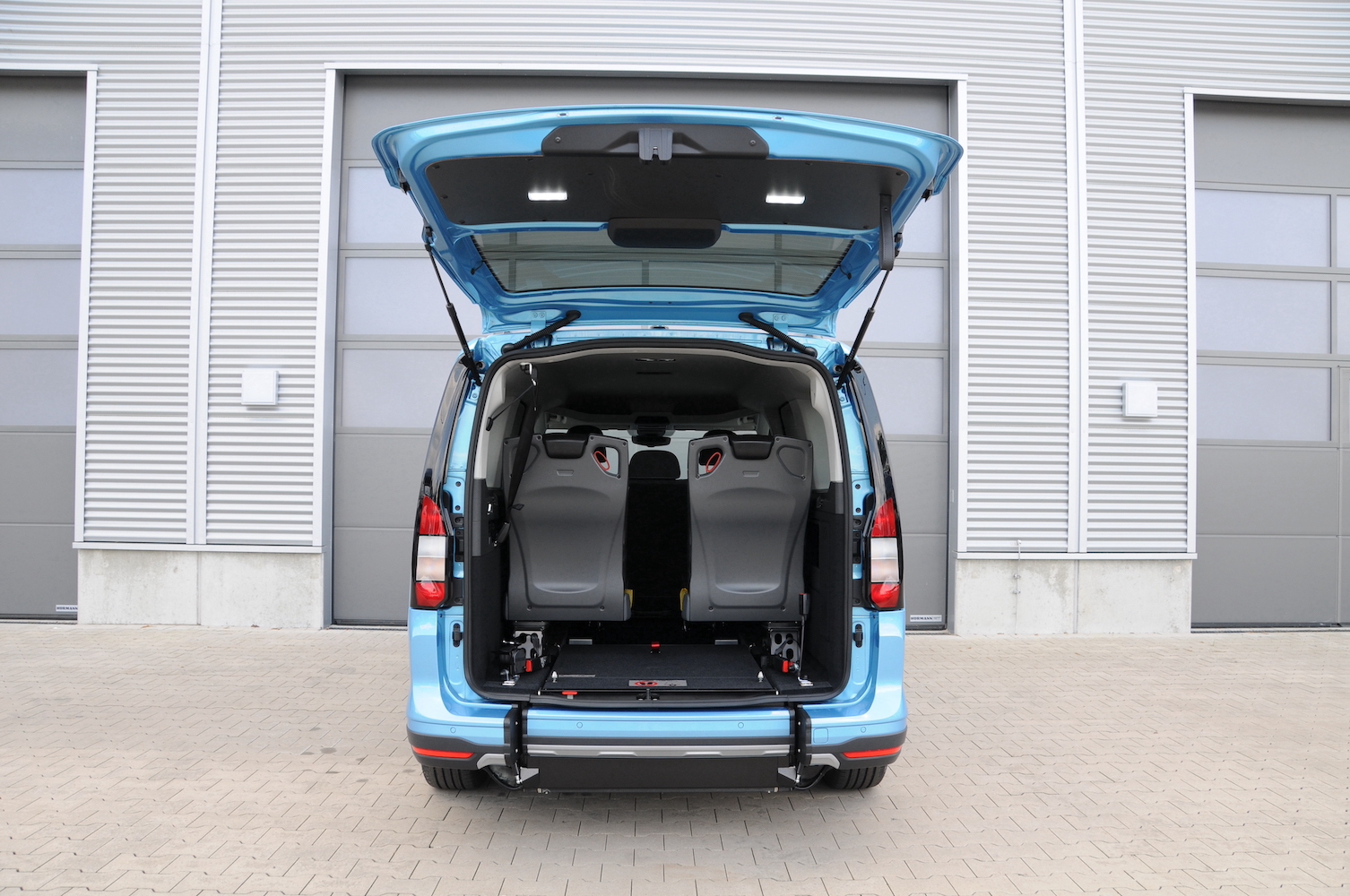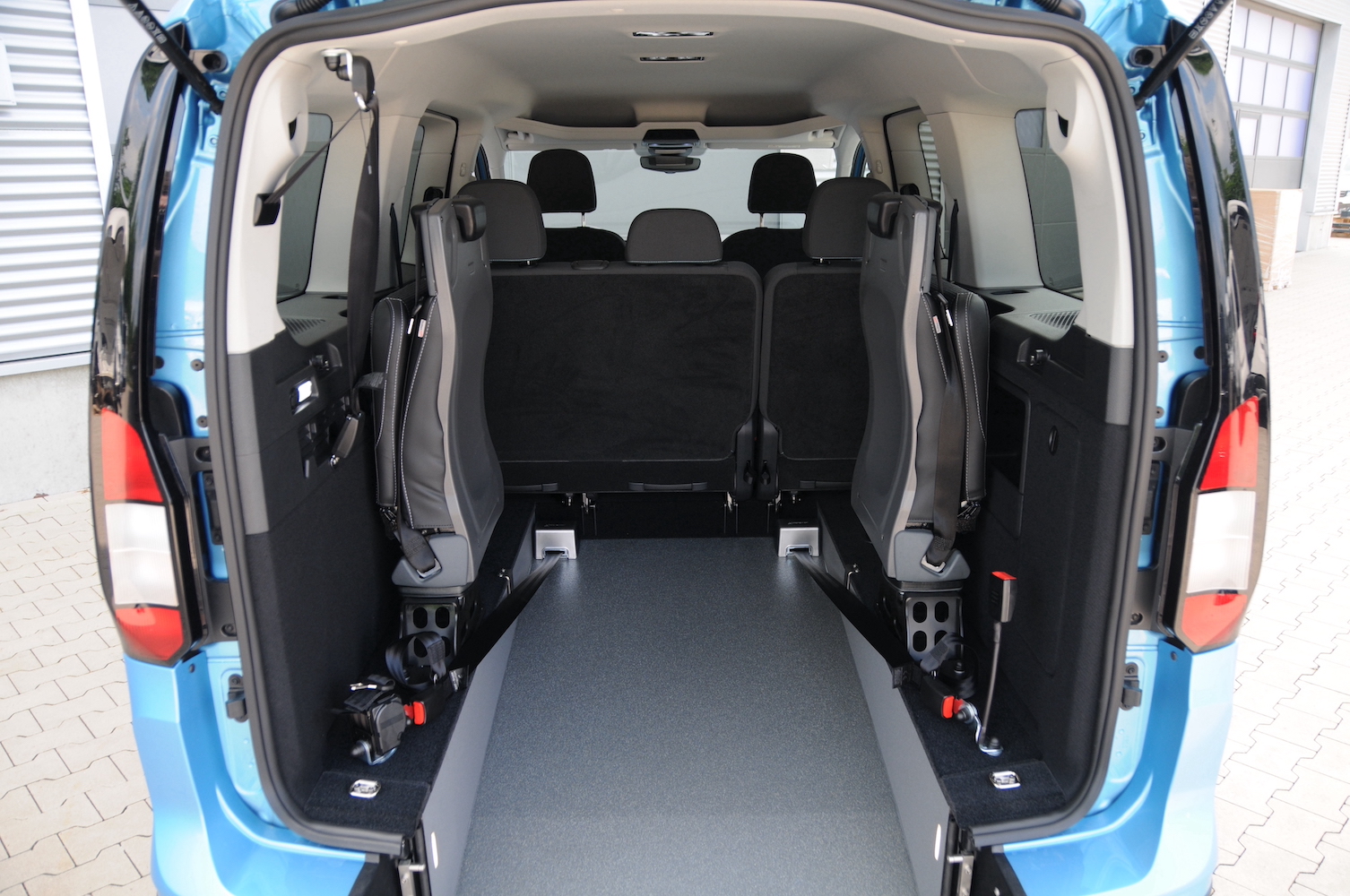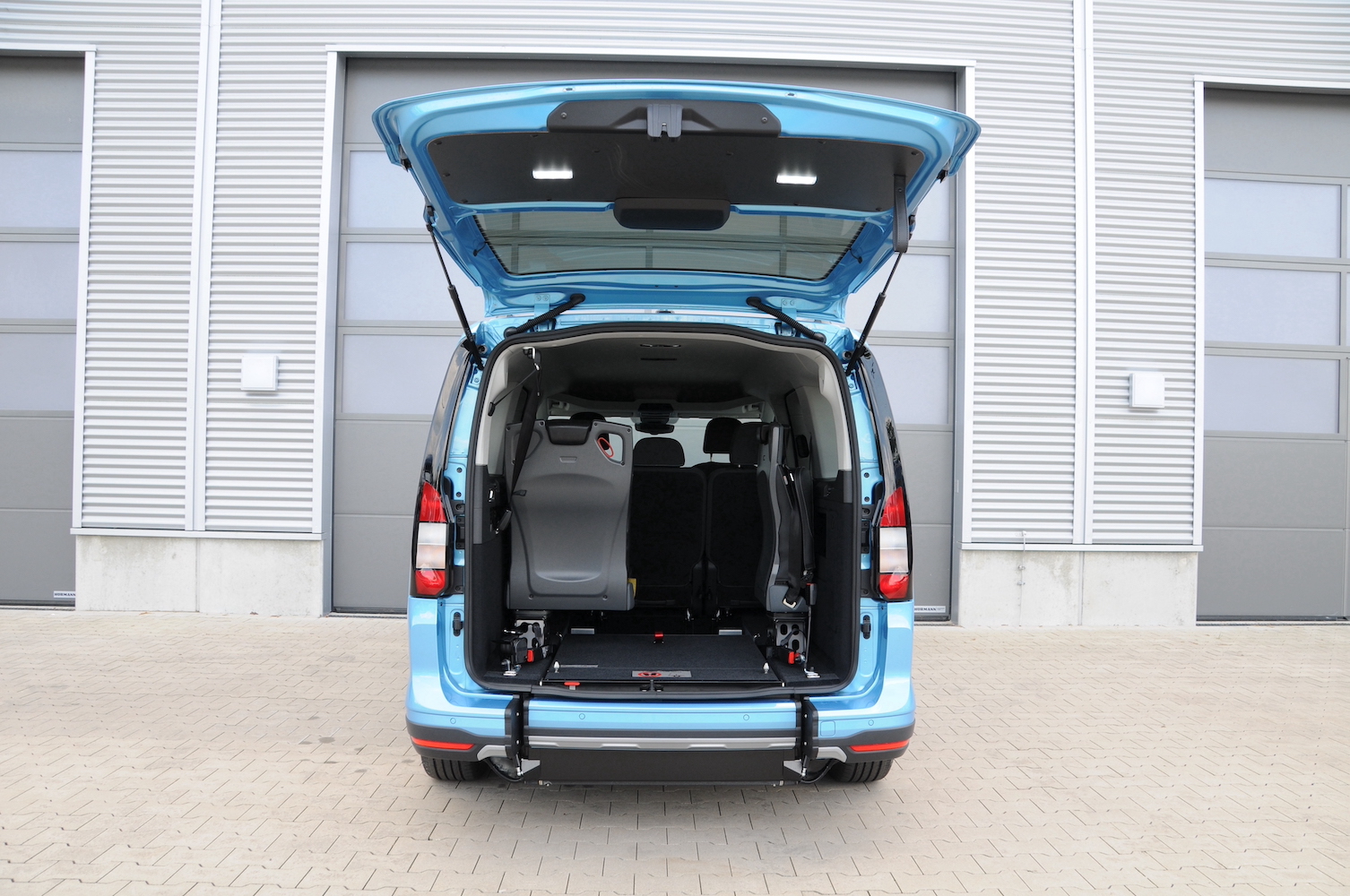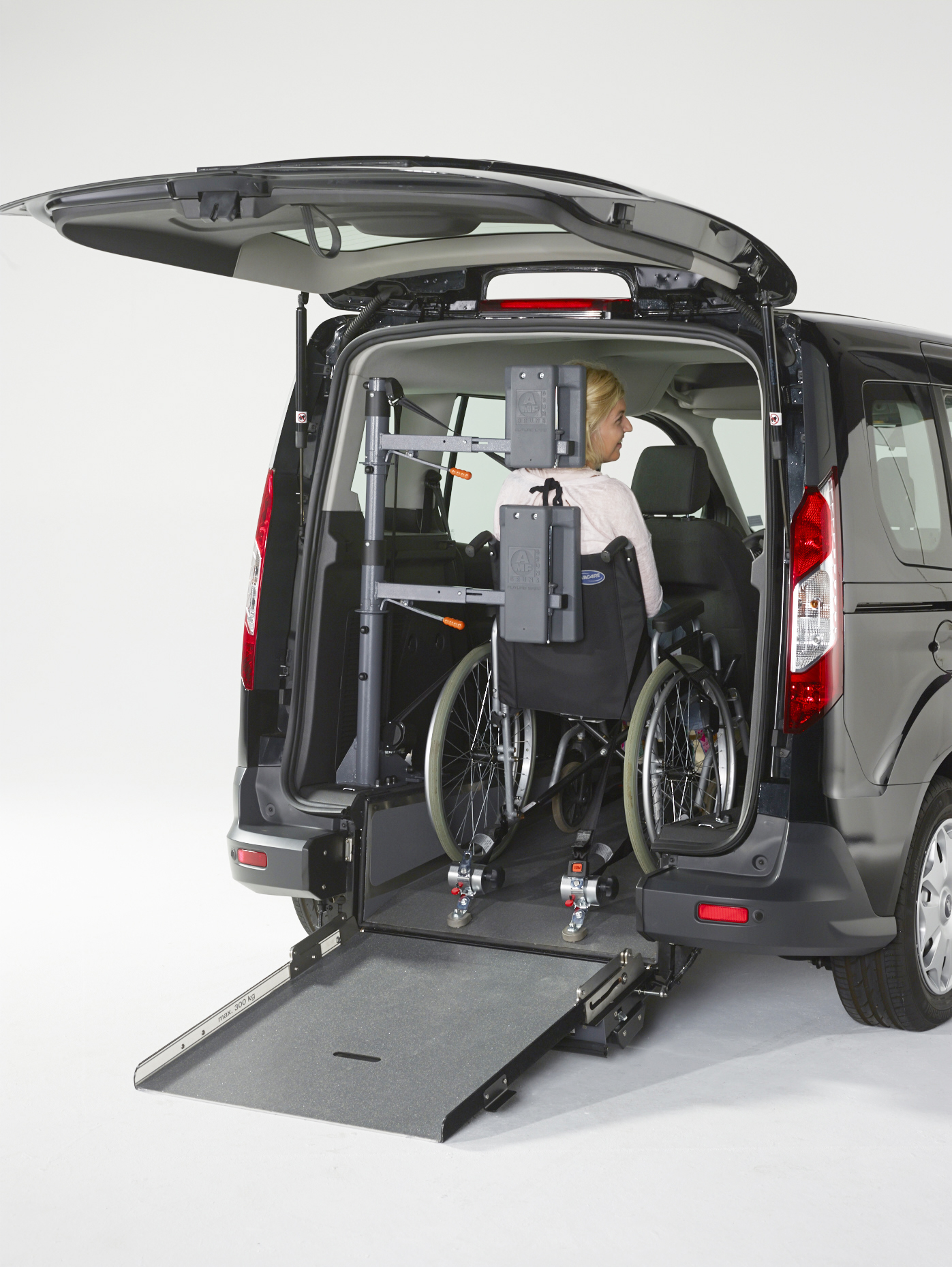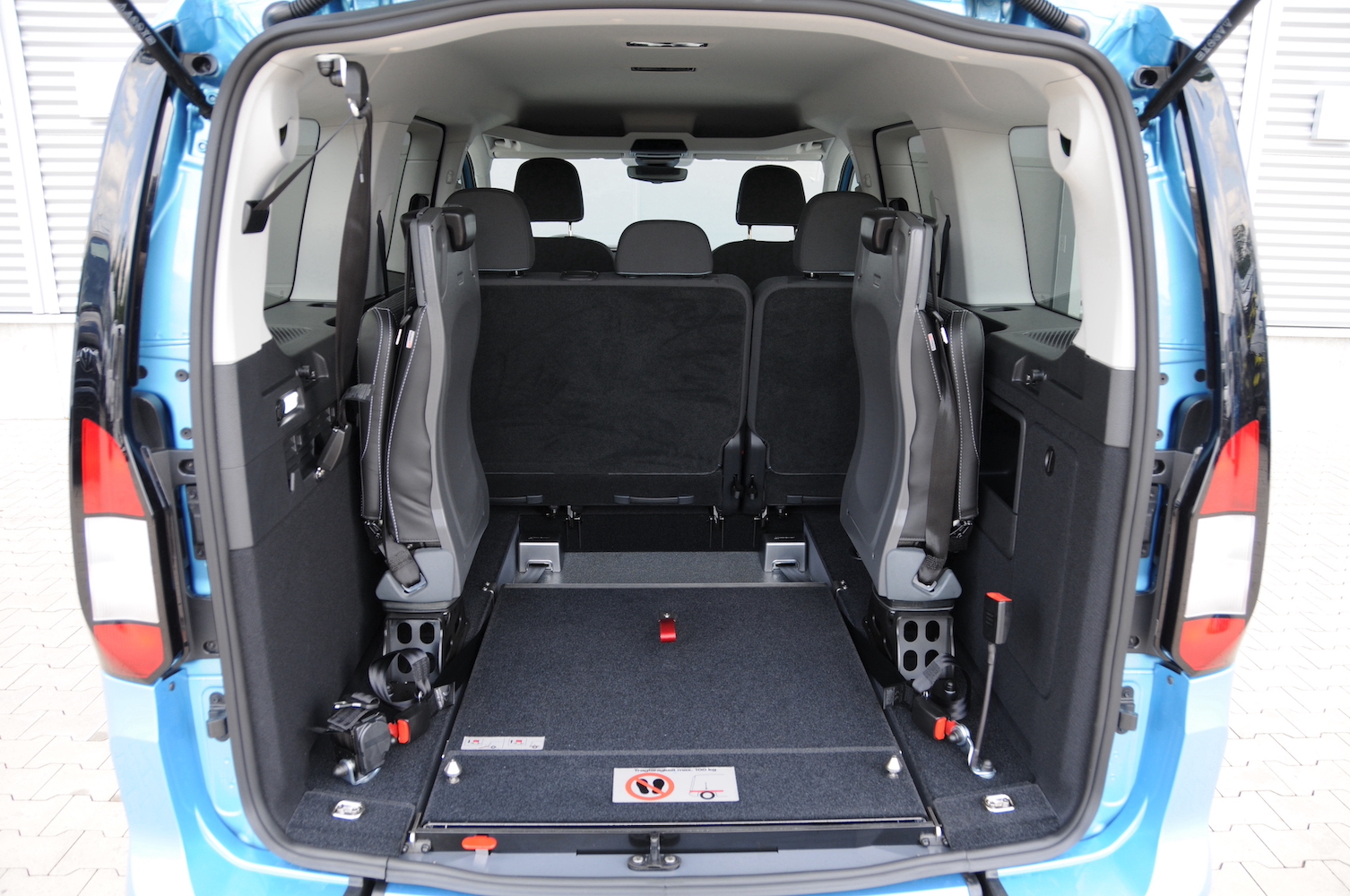 Der Ford Tourneo Connect und der Grand Tourneo Connect sind rollstuhlgerechte Fahrzeuge für Passivfahrer. Durch den Heckausschnitt mit Auffahrrampe kann der Rollstuhlfahrer bequem befördert werden. Die rutschsichere Rampe mit EasyUse Funktion lässt sich mit einer Hand bedienen und ermöglicht einen einfachen Zugang zum Fahrzeug. Dank der tiefergelegten Bodenwanne entsteht viel Platz im Fahrgastraum.