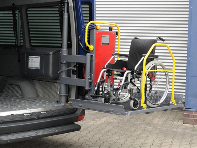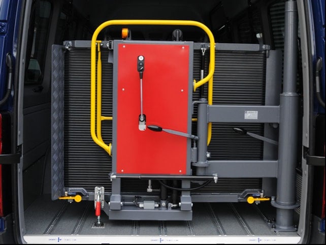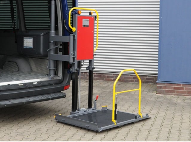 Der Schwenklift kann direkt vom Bürgersteig aus befahren werden und benötigt somit nur wenig Platz hinter dem Fahrzeug. Dies ermöglicht das Ein- und Ausschwenken auch bei engen Verkehrsverhältnissen.