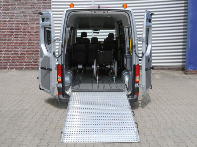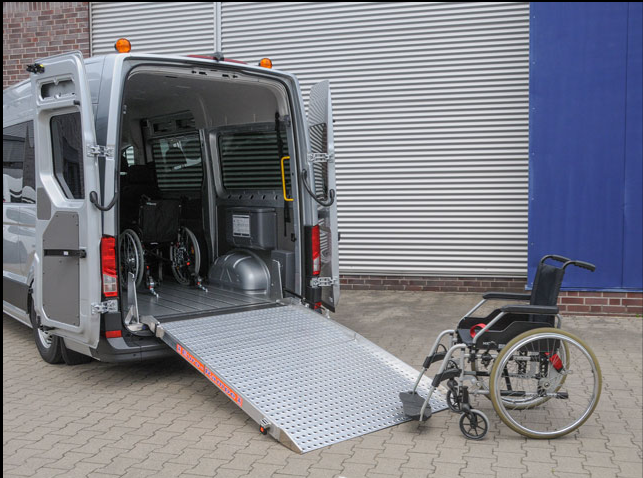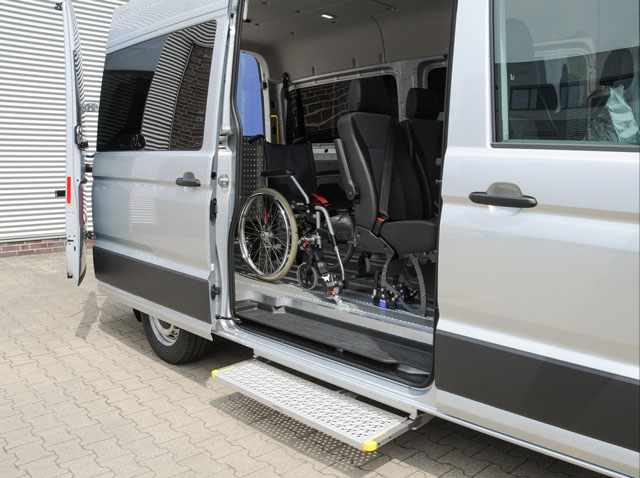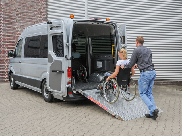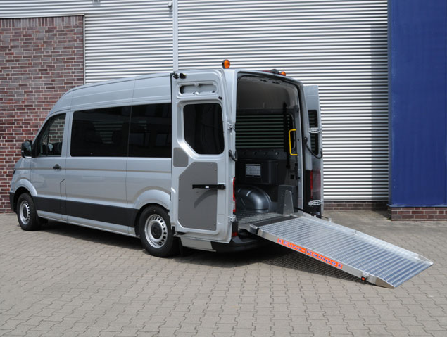 Die Heckabsenkung ist eine besonders einfache und schnelle Lösung für die Beförderung von Rollstühlen. Das Heck des Fahrzeuges wird binnen Sekunden abgesenkt und ermöglicht das problemlose Einfahren des Rollstuhles über eine kurze Rampe. Das Ausklappen der Rampe ist kinderleicht zu bedienen. Nachdem die Rampe wieder abfahrbereit verstaut wurde, hebt sich das System beim Schließen der Hecktür automatisch an.
