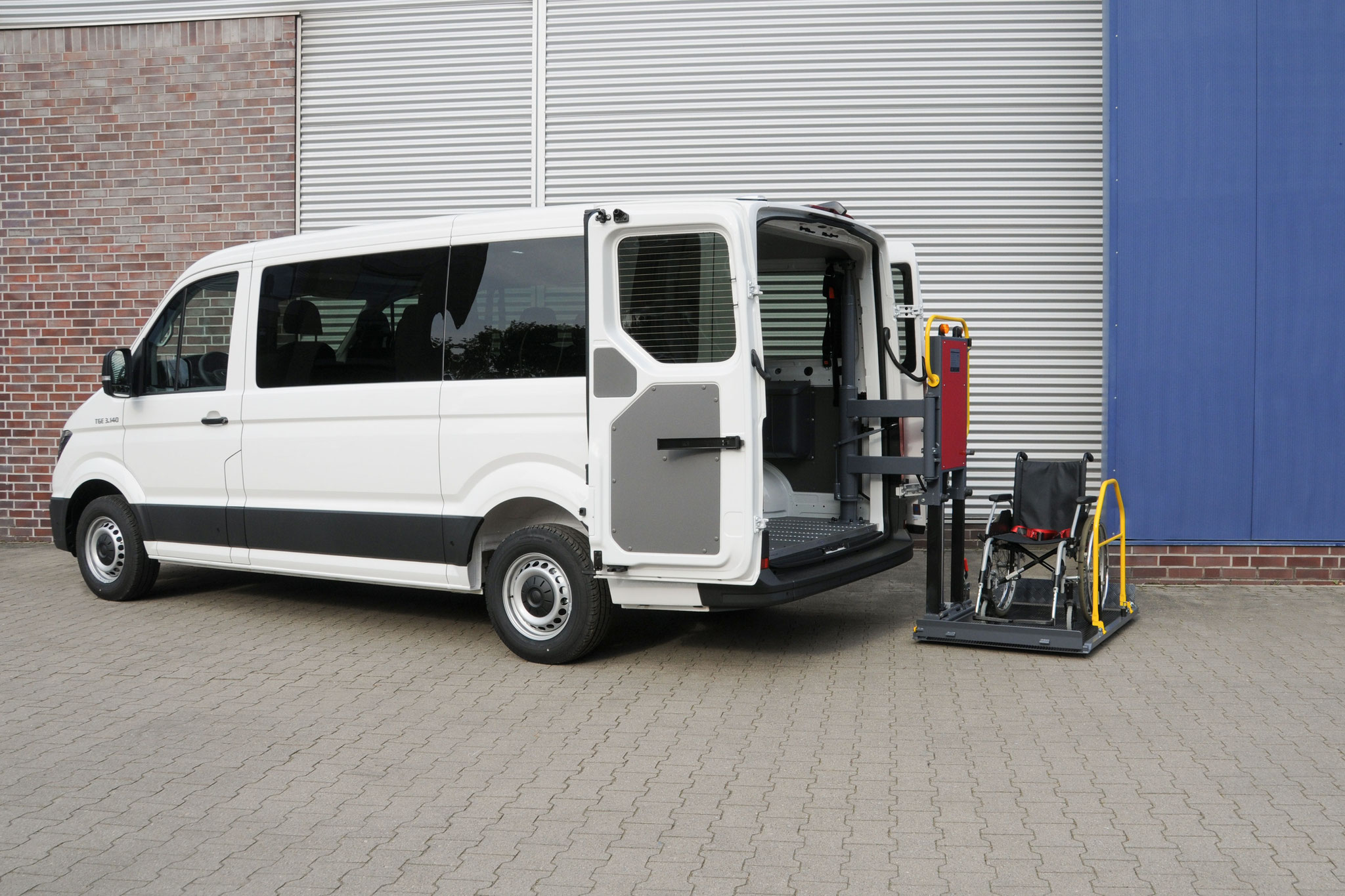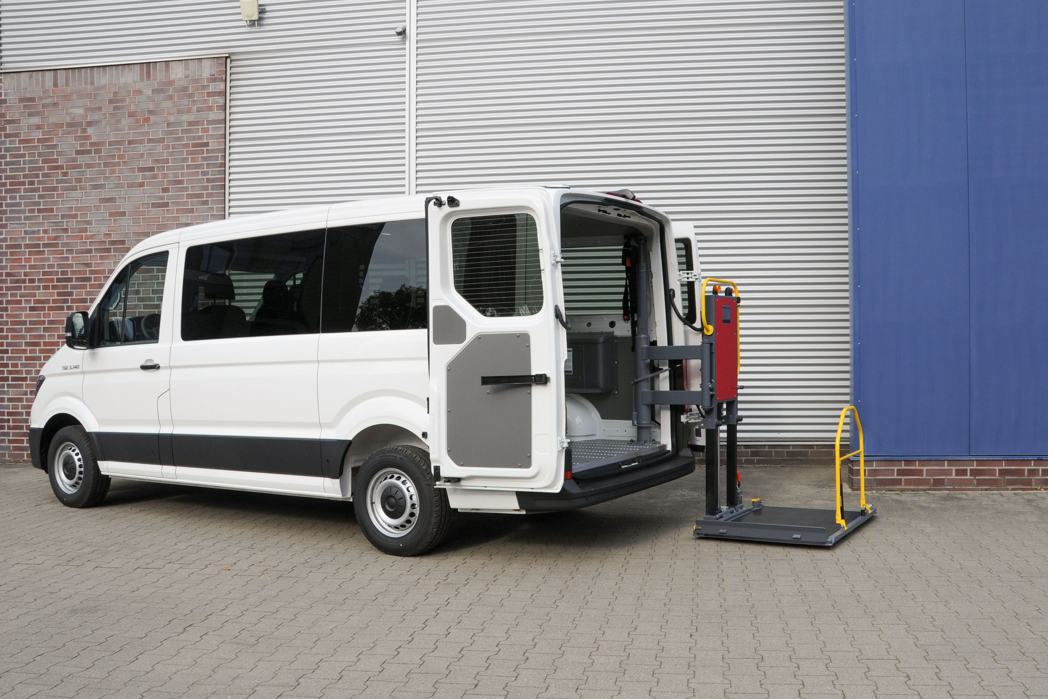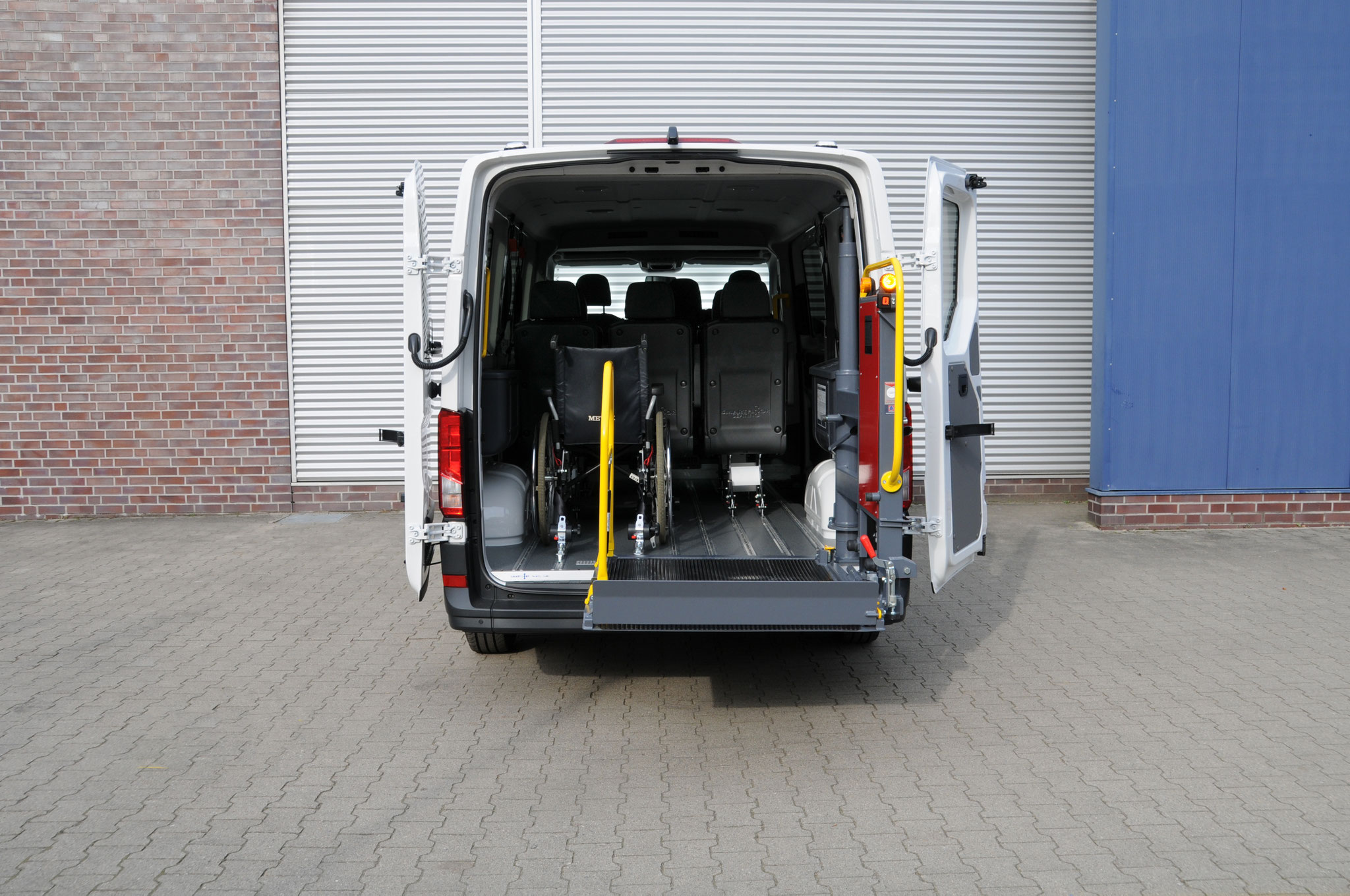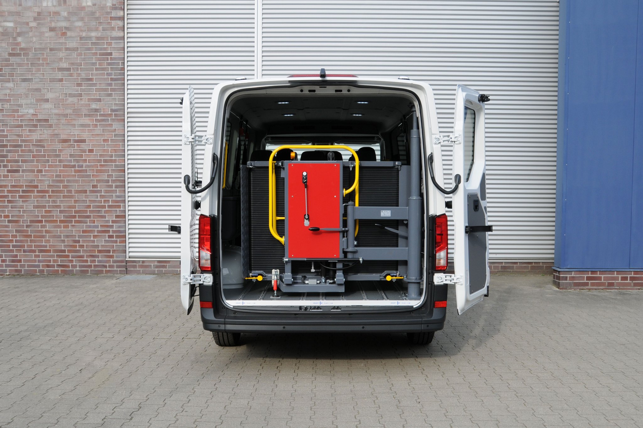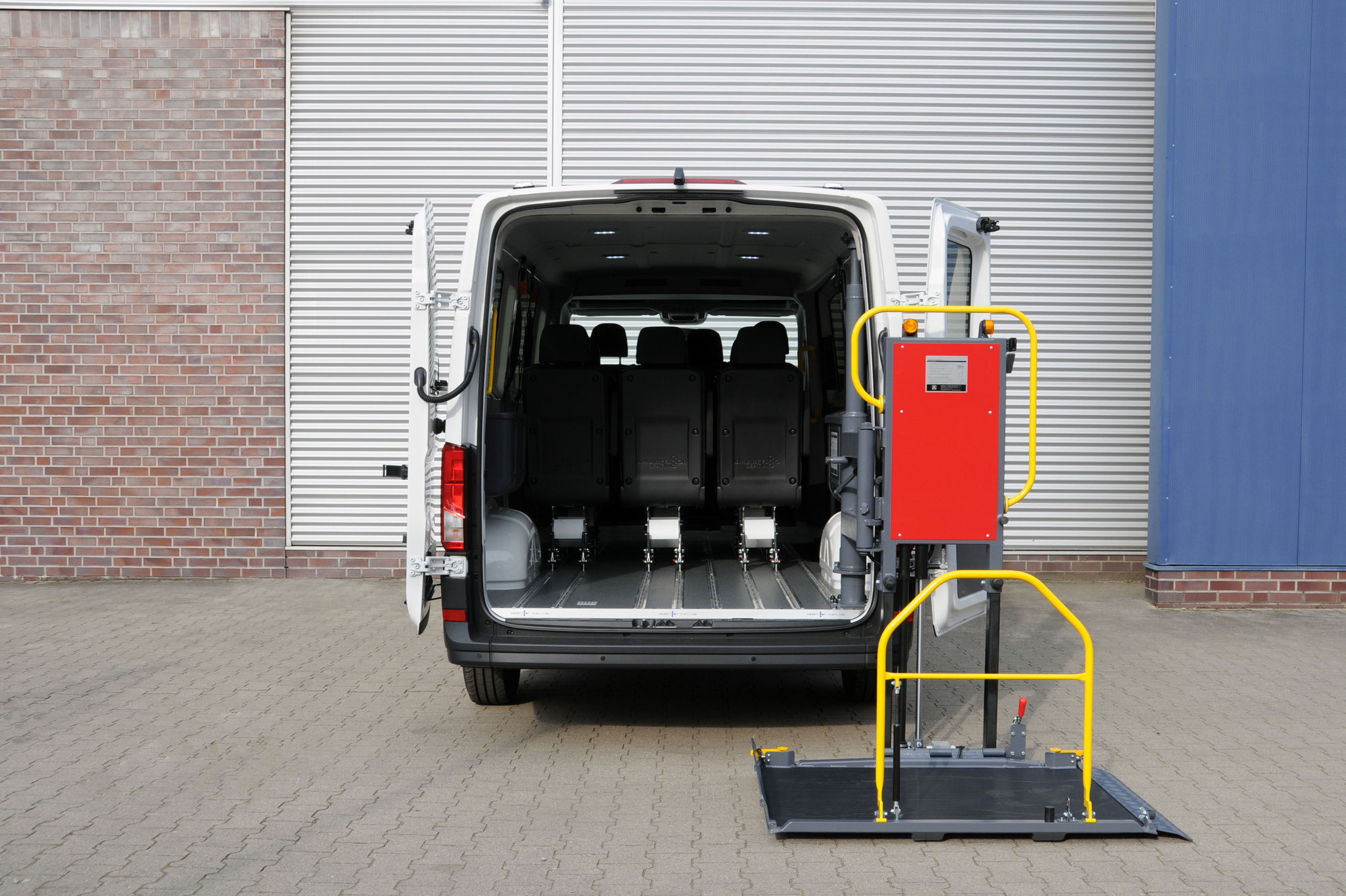 Der Schwenklift kann direkt vom Bürgersteig aus befahren werden und benötigt somit nur wenig Platz hinter dem Fahrzeug. Dies ermöglicht das Ein- und Ausschwenken auch bei engen Verkehrsverhältnissen.