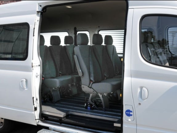 Der Maxus bietet Platz für bis zu acht Passagiere und einen Fahrer. Der AMF-Bruns Umbau mit Smartfloor Aluminium-Systemboden, Smartseat Einzelsitzen und fester Trittstufe entspricht den aktuellen Sicherheitsrichtlinien.