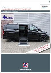 Kassettenlift K70 - der extrem flache Rollstuhllift für Ihr privat genutztes Fahrzeug. Das Nachfolgemodell des K90 wurde optimiert und ist jetzt noch flacher. Die Kassette des K70 wird seitlich unterhalb des Fahrzeuges montiert und beeinträchtigt weder Zugang noch Nutzung des Fahrgastinnenbereichs. Mit dem beleuchteten Bedienelement lässt sich der vollautomatische Unterbodenlift K70 aus- und einfahren.