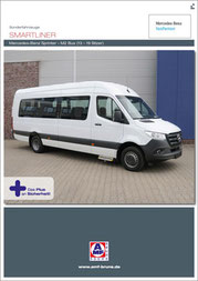 Für Fahrten mit bis zu 19 Fahrgästen ist der AMF-Bruns Smartliner auf Basis des Mercedes-Benz Sprinter optimal geeignet. Schon beim mühelosen Einstieg über die automatisch ausfahrbare Trittstufe und dem stabilen Haltegriff im Eingangsbereich beginnt ein Komfort, der selbst lange Fahrten angenehm macht. Ergonomische M2 Einzelsitze mit integrierten 3-Punkt Gurt sorgen für die nötige Sicherheit der Fahrgäste. Der Smartliner entspricht allen Richtlinien und Vorschriften für M2 Busse und verfügt über einen großzügigen Innenraum.