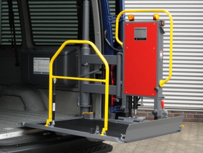 Der Schwenklift kann direkt vom Bürgersteig aus befahren werden und benötigt somit nur wenig Platz hinter dem Fahrzeug. Dies ermöglicht das Ein- und Ausschwenken auch bei engen Verkehrsverhältnissen.