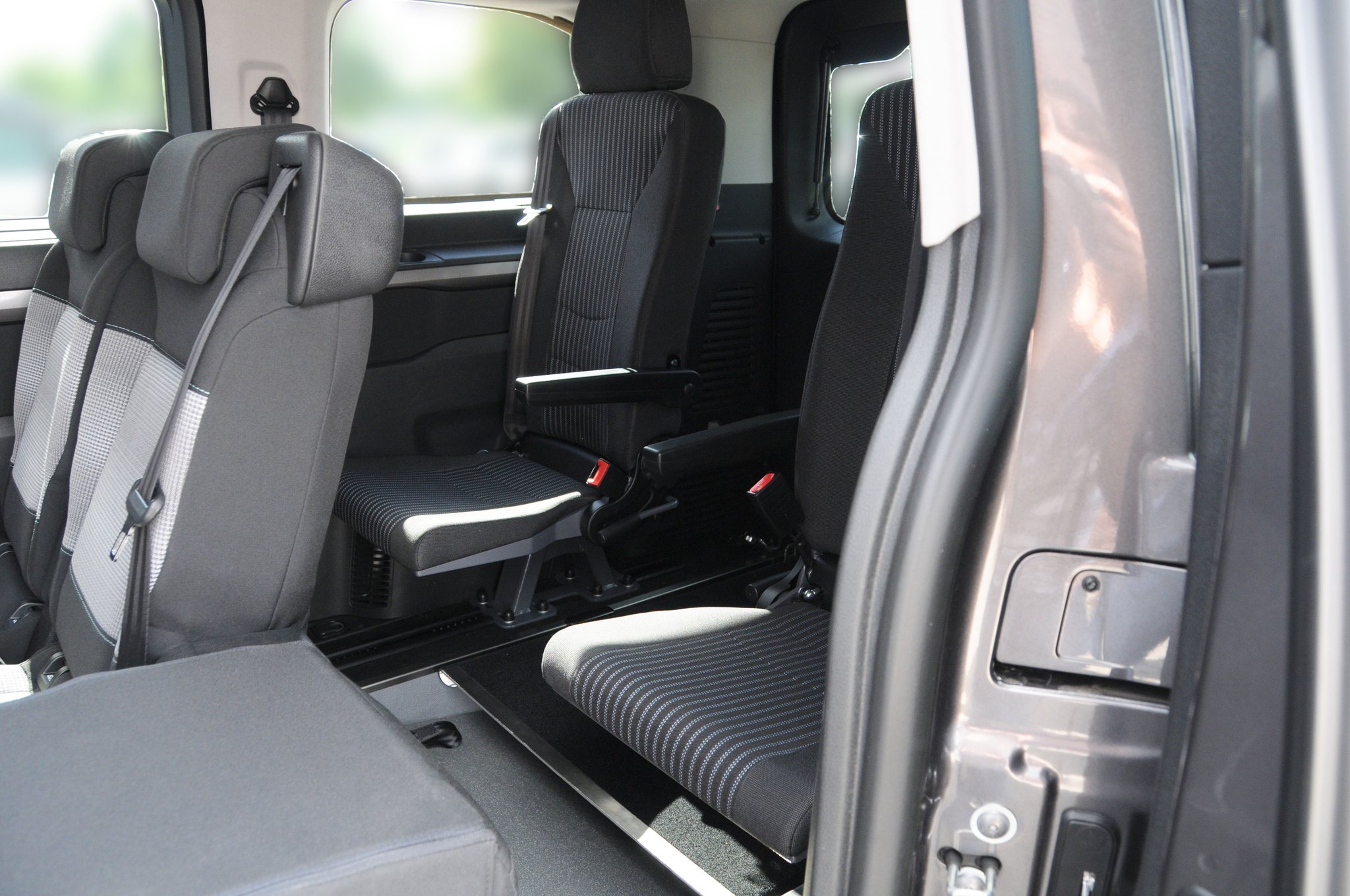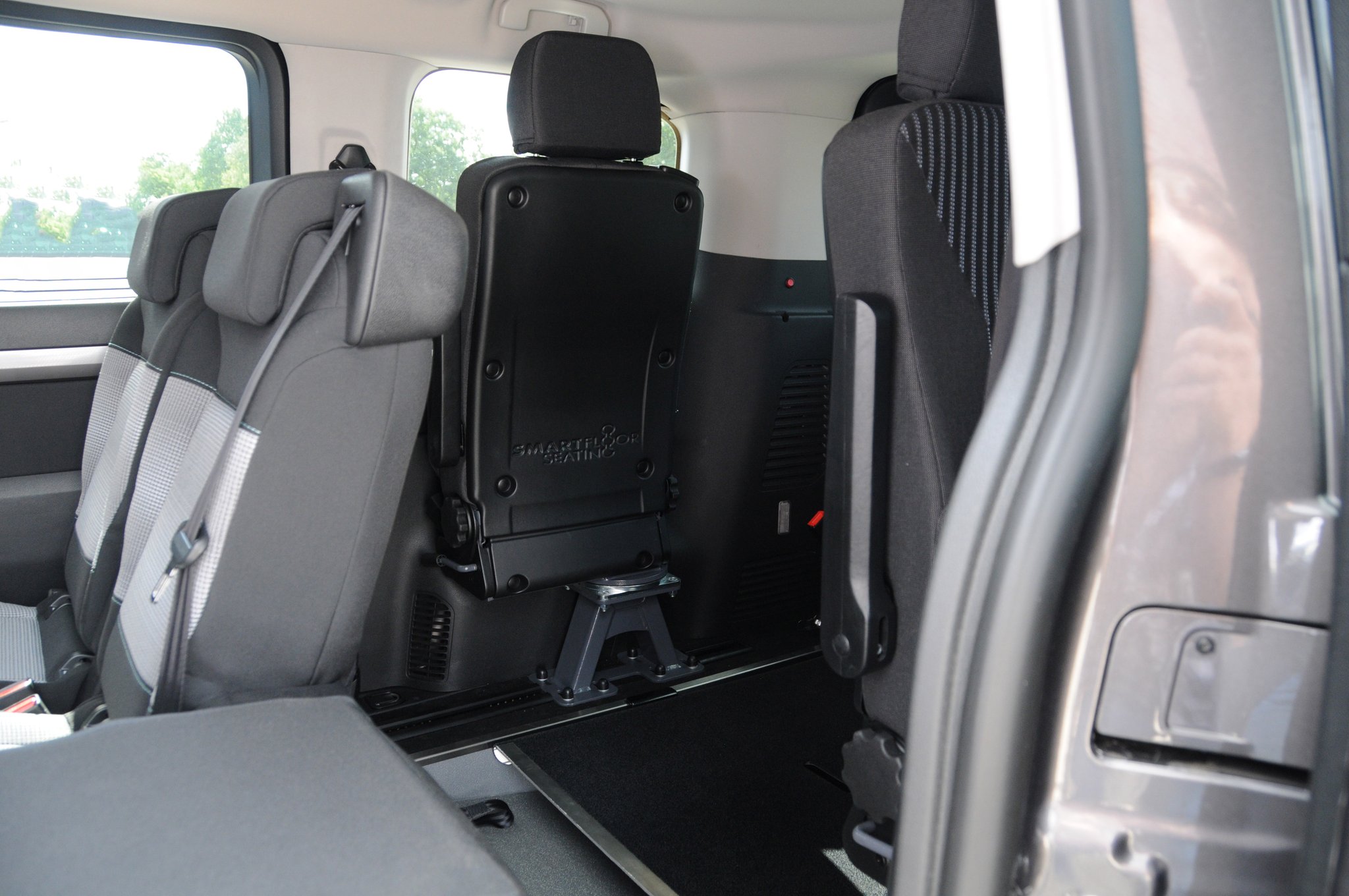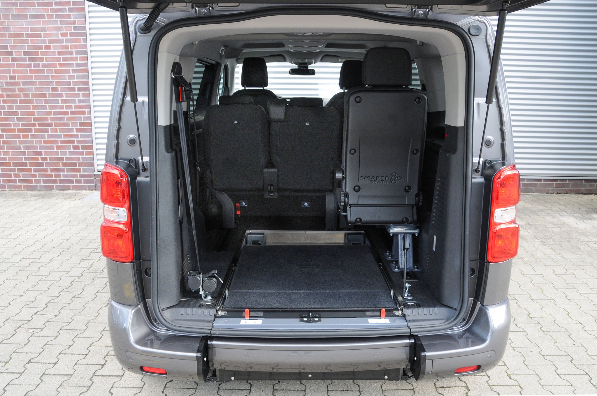 Der Toyota Proace ist ein rollstuhlgerechtes Fahrzeug für Passivfahrer. Durch den Heckausschnitt mit Auffahrrampe kann der Rollstuhlfahrer bequem befördert werden. Die rutschsichere Rampe ermöglicht einen einfachen Zugang zum Fahrzeug und dank der tiefergelegten Bodenwanne entsteht viel Platz im Fahrgastraum. Mit Hilfe eines Personen- & Rollstuhlrückhaltesystems wird der Rollstuhl am Fahrzeugboden befestigt und die Person gesichert. Extra Schutz bietet die Kopf- & Rückenstütze FutureSafe.