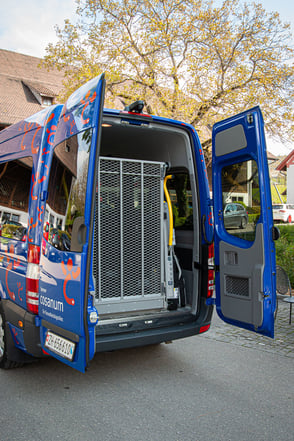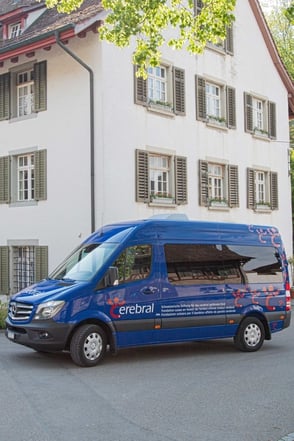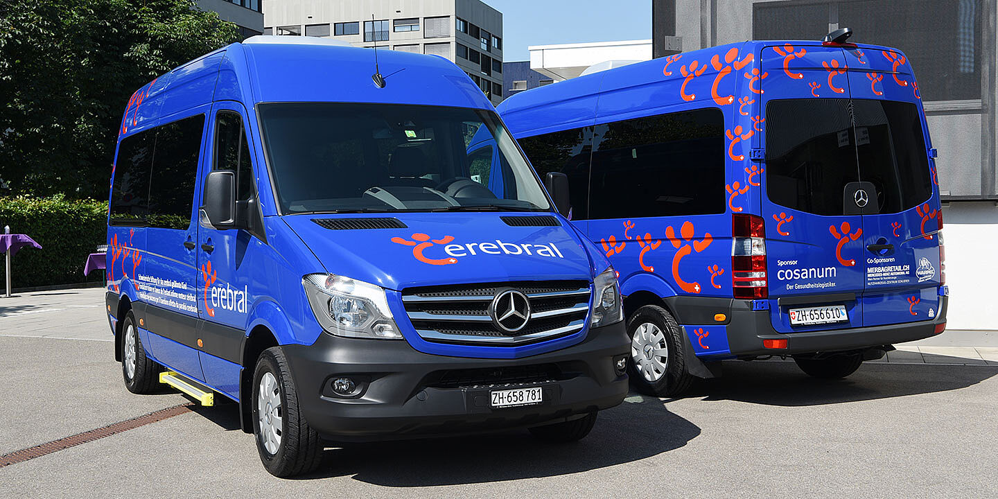 Die Stiftung Cerebral vermietet in Zusammenarbeit mit der Cosanum AG und der Mercedes-Benz Automobil AG rollstuhlgängige Busse. cerebral.ch