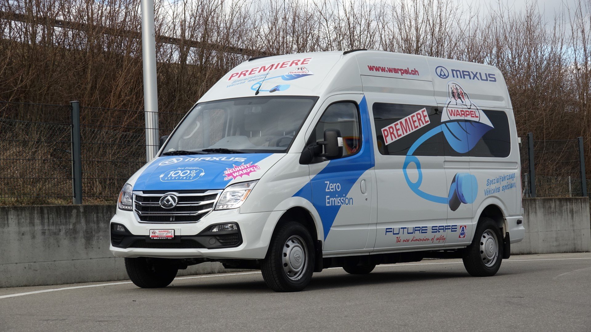 angetriebenen Maxus EV80 an. Mit einer Reichweite von bis 200 km