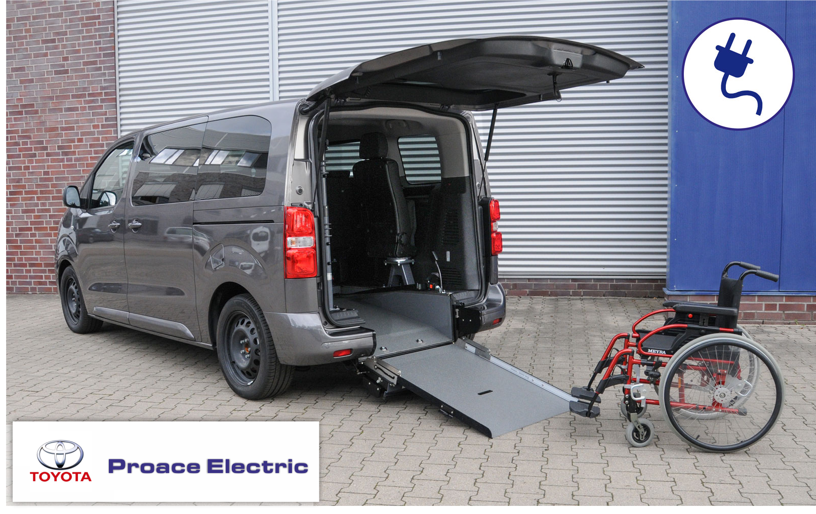Der ProAce Electric mit kleinem Batteriepaket (50 kWh) lässt sich perfekt zum Fahrzeug mit Heckausschnitt und Auffahrrampe umbauen. Die Reichweite gibt der Hersteller mit bis zu 230 km an. Insgesamt fünf Personen plus Rollstuhlfahrer lassen sich schnell und sicher befördern. Damit ist der ProAce Electric das einzige Fahrzeug in seiner Klasse, bei dem das möglich ist. WARPEL ist zertifizierter Umbaupartner, daher erfolgt der rollstuhlgerechte Umbau mit einer Unbedenklichkeitsbescheinigung vom Hersteller sowie mit einer europäischen Typgenehmigung.