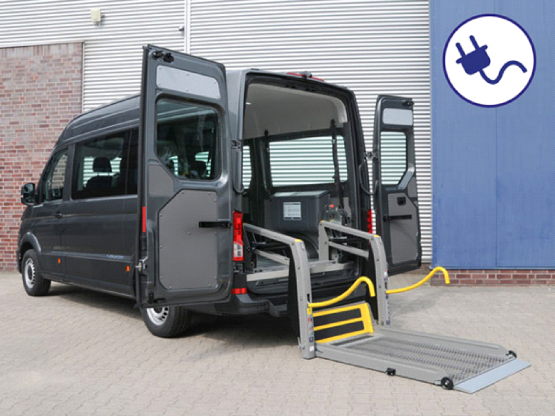WARPEL ermöglicht den Umbau vom Volkswagen e-Crafter zum vielseitigen KMP (Kraftfahrzeug für mobilitätseingeschränkte Personen) oder für die komfortable Personenbeförderung auch ohne Rollstuhl.