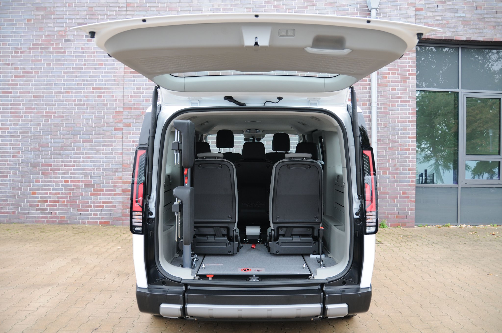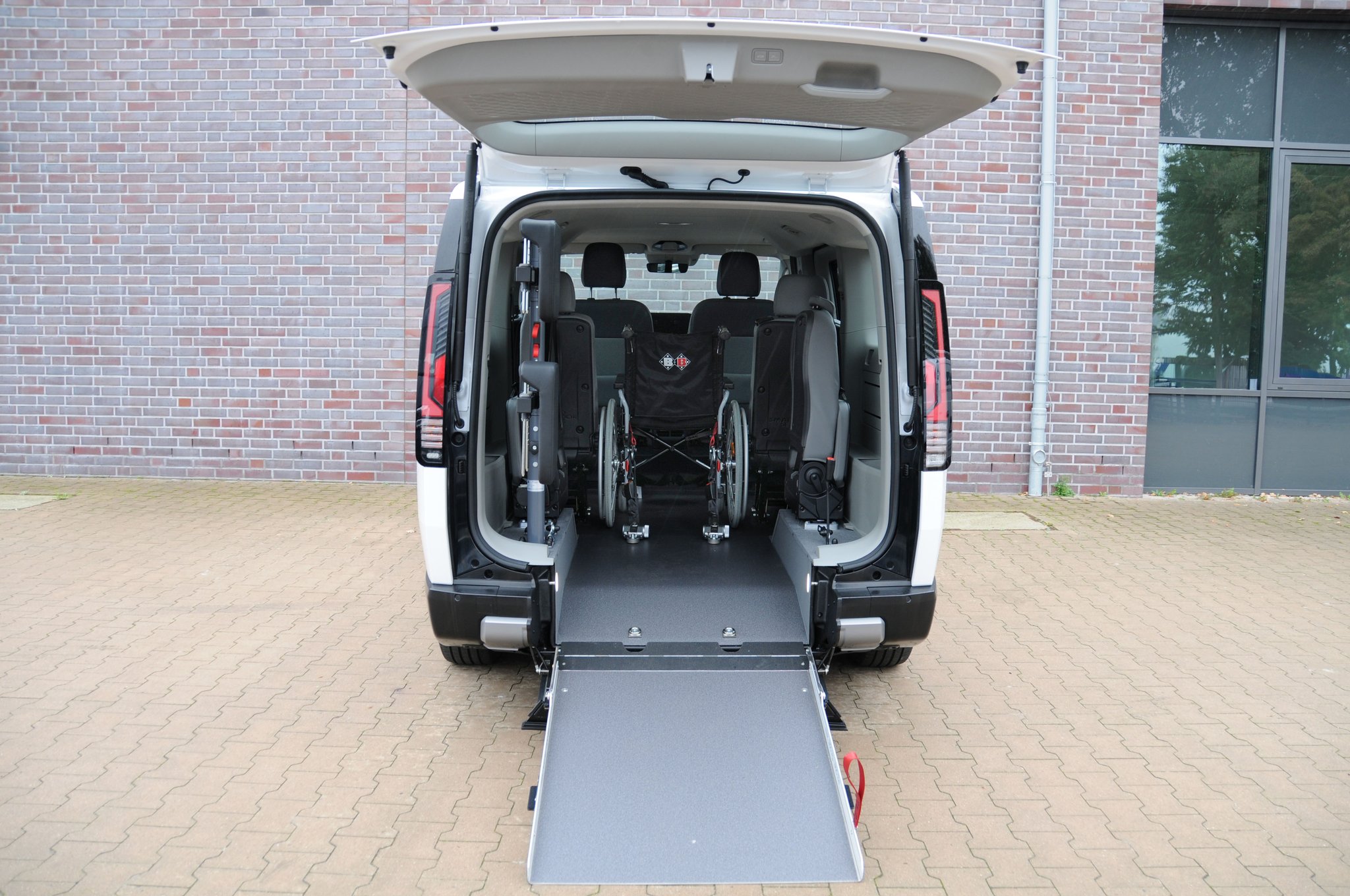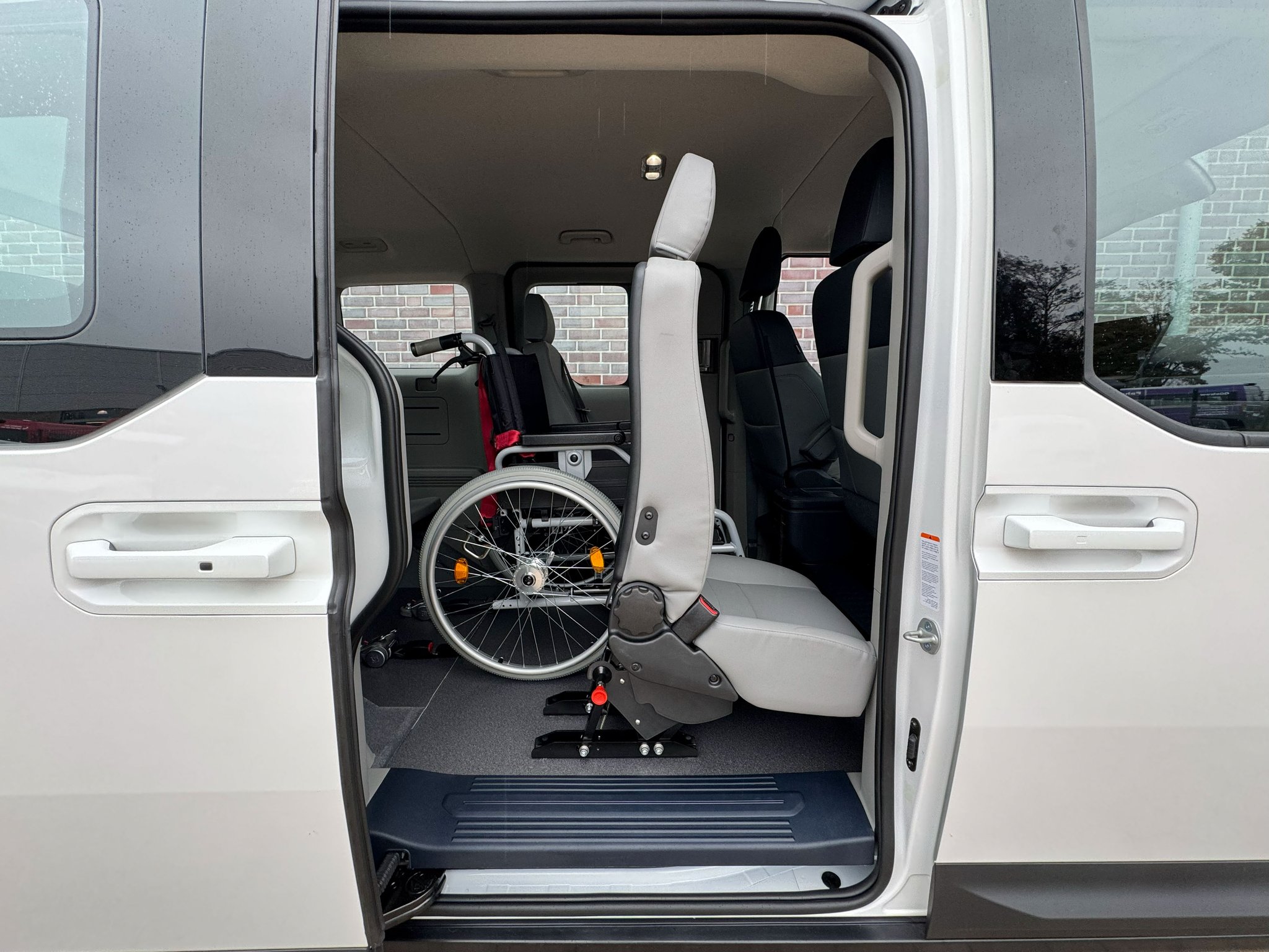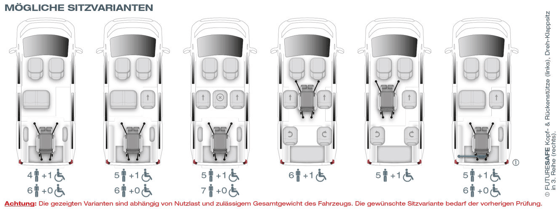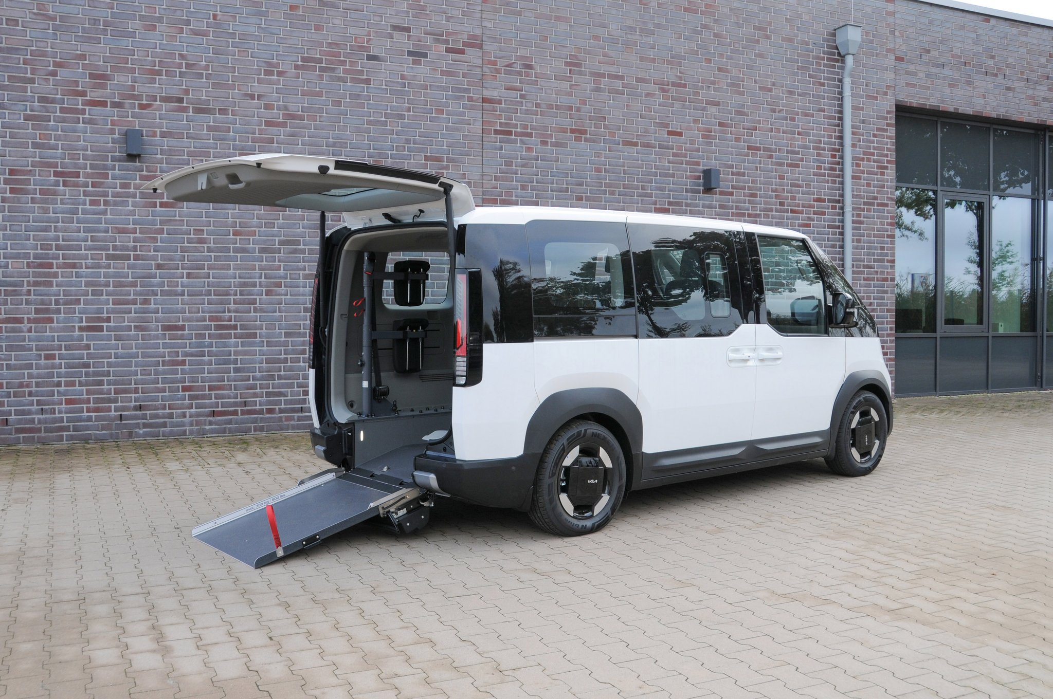 Die Basis beim KIA PV5 bildet ein Heckausschnitt mit rutschsicherer Auffahrrampe und EasyUse Funktion, der individuell erweitert werden kann. Für einen bequemen Zugang zur dritten Reihe lässt sich zum Beispiel der Sitz am Seiteneinstieg bequem nach vorn kippen. Die patentierte, optionale EasyFlex Rampe ermöglicht durch das Umklappen der Rampe ins Fahrzeuginnere eine vollständige Nutzung des hinteren Fahrzeugbereichs. Ebenfalls sorgen optionale Dreh-Klappsitze in der dritten Reihe für noch mehr Flexibilität und Platz, sodass das Fahrzeug sowohl für Rollstuhlfahrer als auch für die Beförderung von bis zu 7 Personen ideal genutzt werden kann.