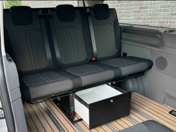Basis dieser innovativen Produktentwicklung ist der New Transporter. von Volkswagen oder der neue Ford Custom. Im Mittelpunkt des flexiblen Konzepts steht der superleichte Smartfloor Revolution, dessen Schienensystem eine ideale Grundlage für verschiebbare Module bietet.