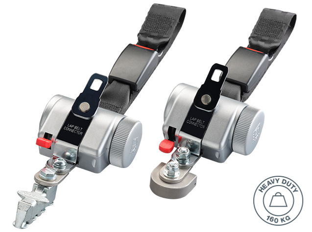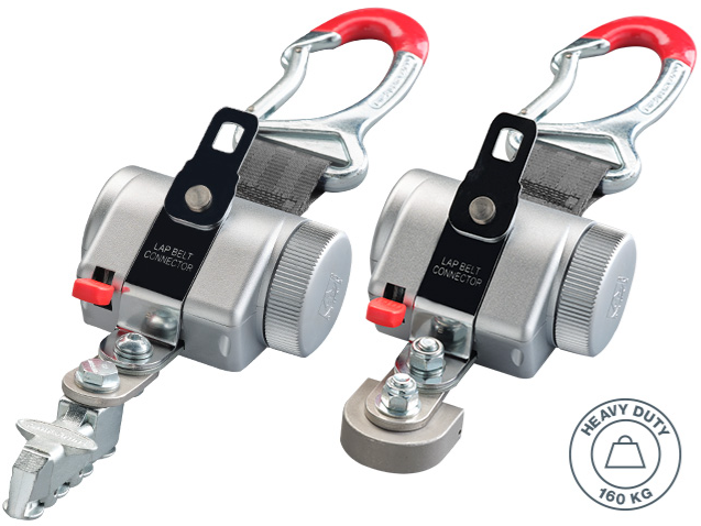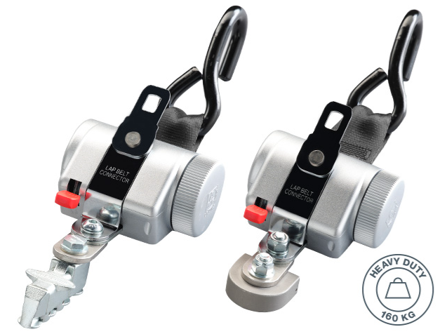 Dieses besonders stabile 4-Punkt Sicherheitssystem überzeugt durch das robuste Design und die besonders einfache Handhabung. Die Retraktoren werden mit einem Mono- oder Vierfachfitting am Fahrzeugboden befestigt. Mit Karabiner, Haken oder Schlaufe lässt sich der Retraktor ganz einfach am Rollstuhl befestigen.